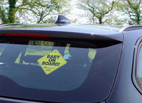 The “Baby on Board” sign is internationally recognized.