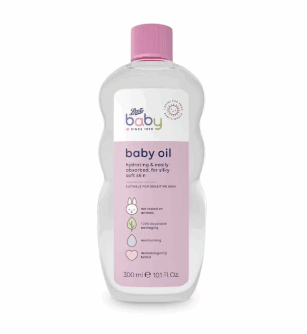 A dermatologically tested baby oil designed to moisturize and soften delicate skin, suitable for sensitive skin.