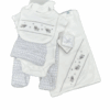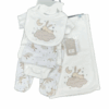 The set features a white color with subtle animal patterns, making it suitable for both baby boys and girls.